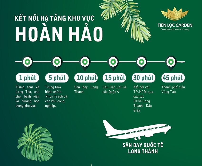 – Tiến Lộc Garden nằm mặt tiền đường Nguyễn Ái Quốc nối trực tiếp ra 2 tuyến đường huyết mạch là Đường Hùng Vương và QL 51 cao tốc TPHCM đi Long Thành khi các cây cầu nối Nhơn Trạch với quận 2, quận 9 và Cần Giờ được triển khai xây dựng kết hợp với hệ thống cảng quốc tế Cát Lái, Cái Mép – Thị Vải, sân bay quốc tế Long Thành…sẽ là “đòn bẩy” giúp Nhơn Trạch phát triển bùng nổ, mở toang cánh cửa giao thương và trở thành vùng đất vàng khai thác kinh doanh. Cùng với đó, giá trị bất động sản tại DỰ ÁN sẽ không ngừng gia tăng.